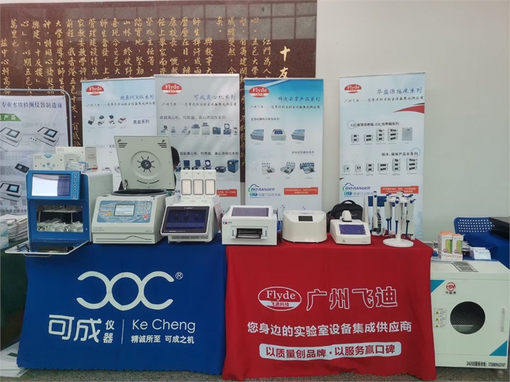 攜帶了可成離心機,賽百純核酸提取儀、試劑,朗基三槽PCR儀T30,科迪云享酶標儀KD-810A,華盛源小型搖床,源智細胞細胞復蘇儀,迪樂嘉超微量分光光度計,朗格曼單道八道十二道移液器等主要產(chǎn)品亮相展示。